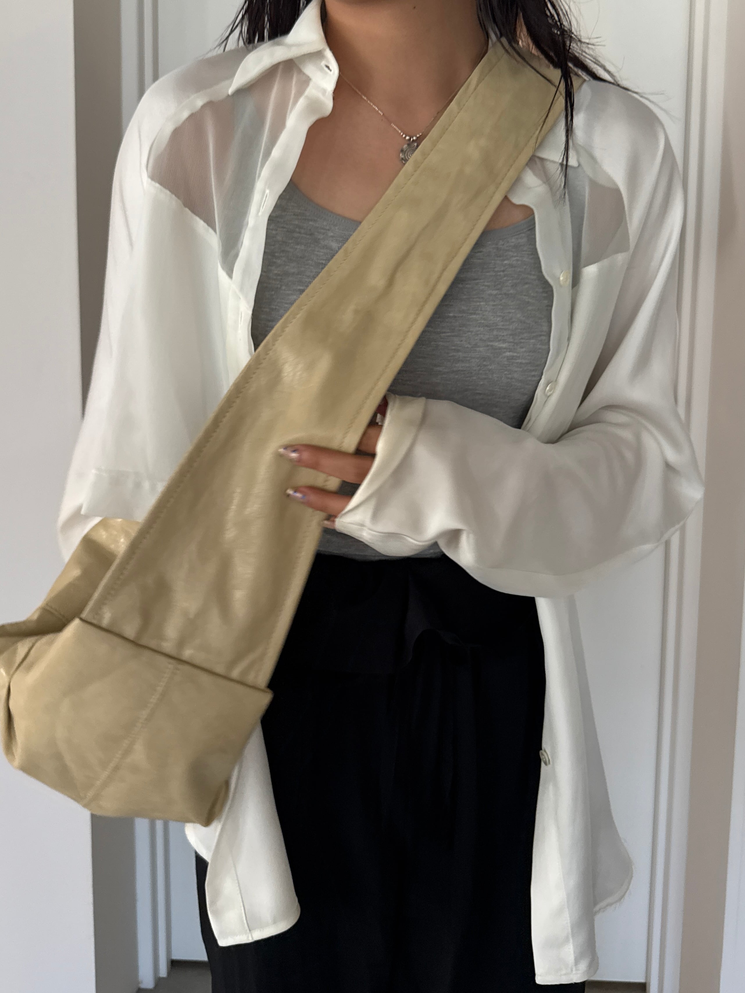 •柔らかいフェイクレザー素材を使用した、ルーズなフォルムが特徴のショルダーバッグ。