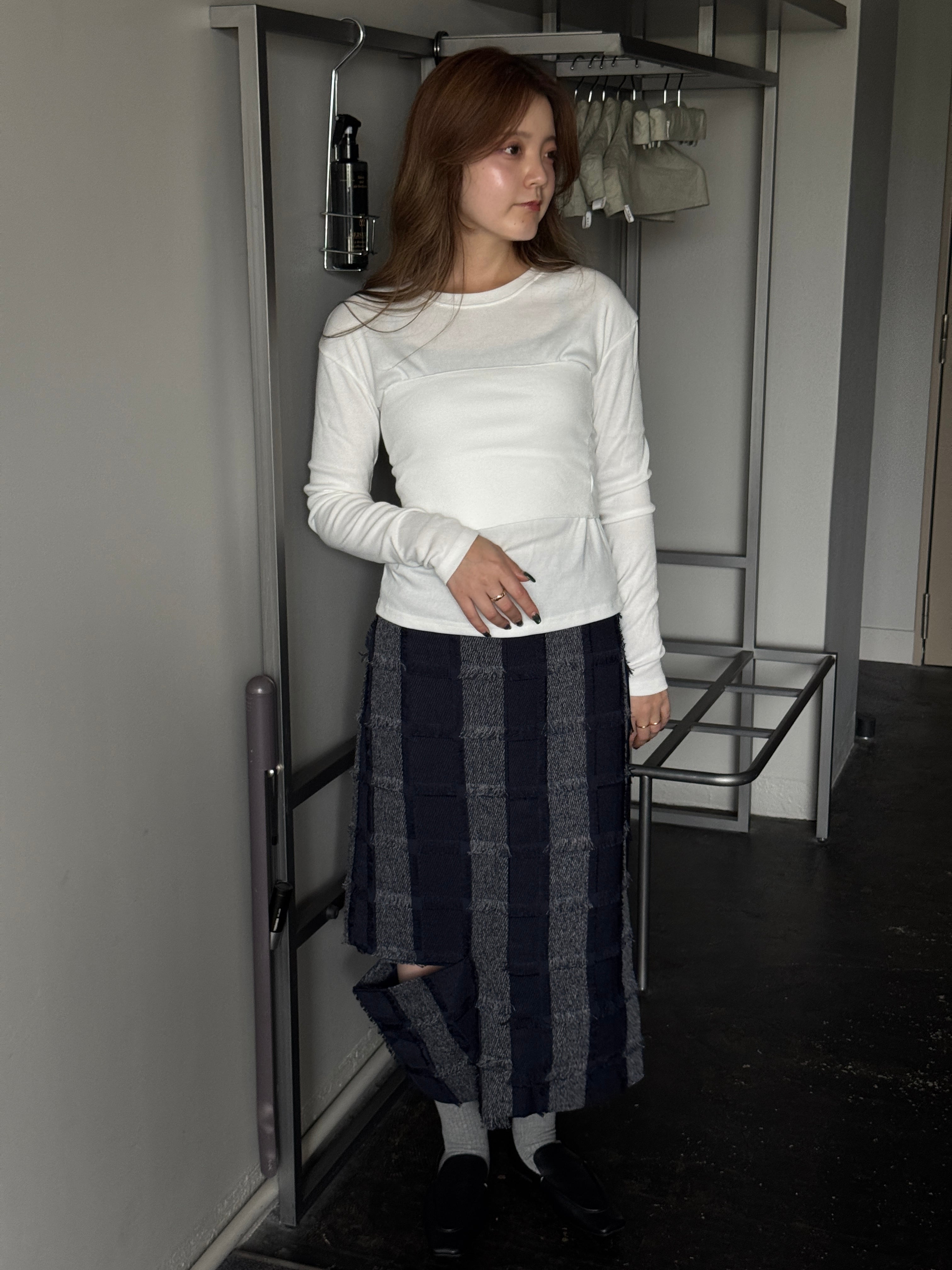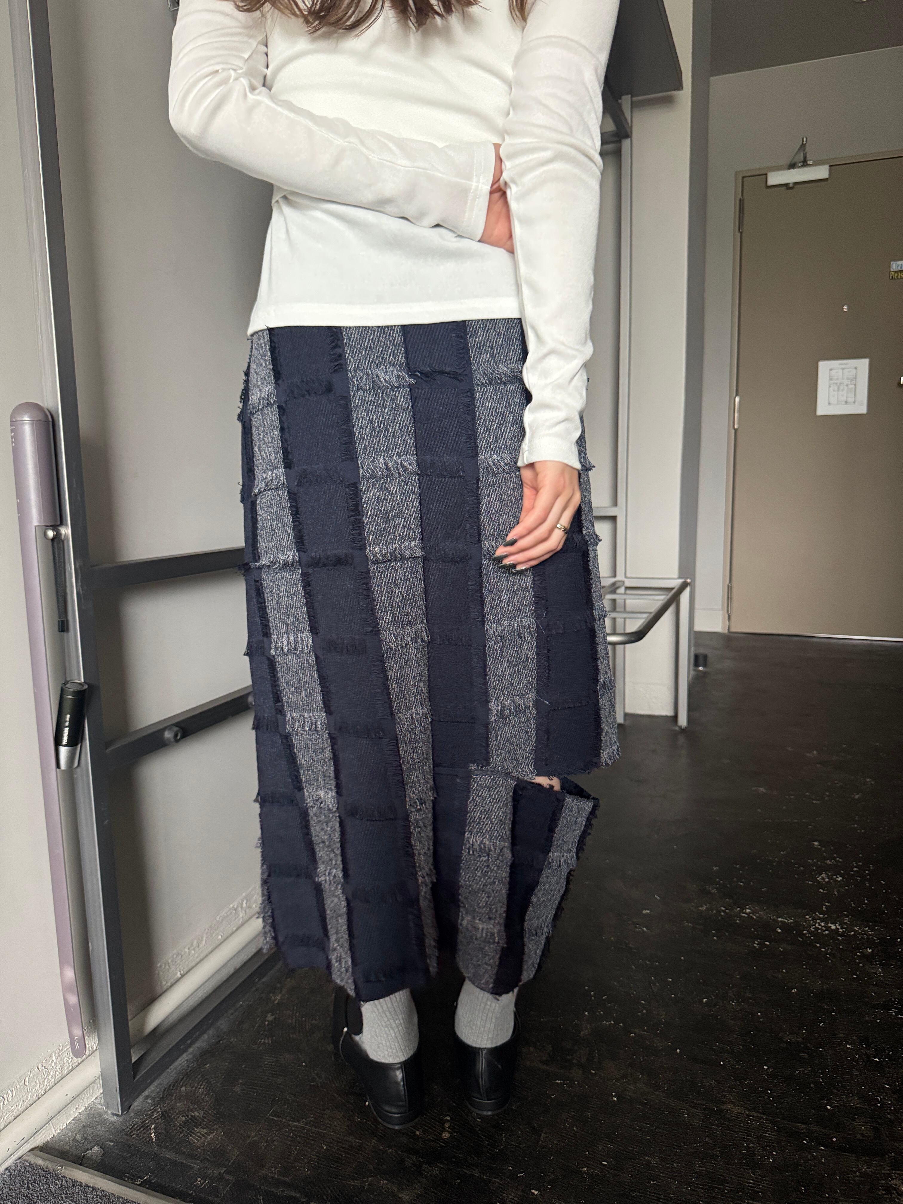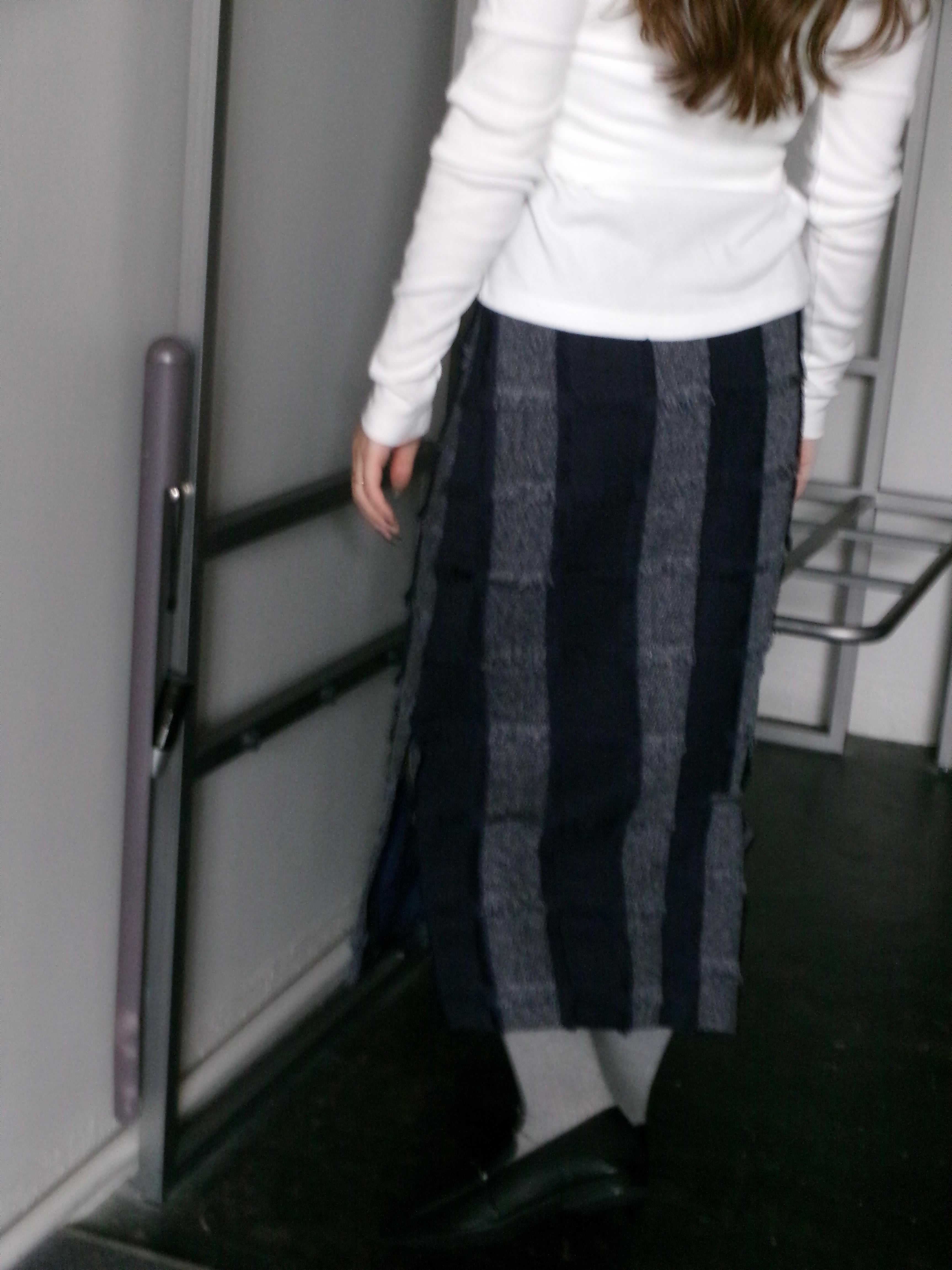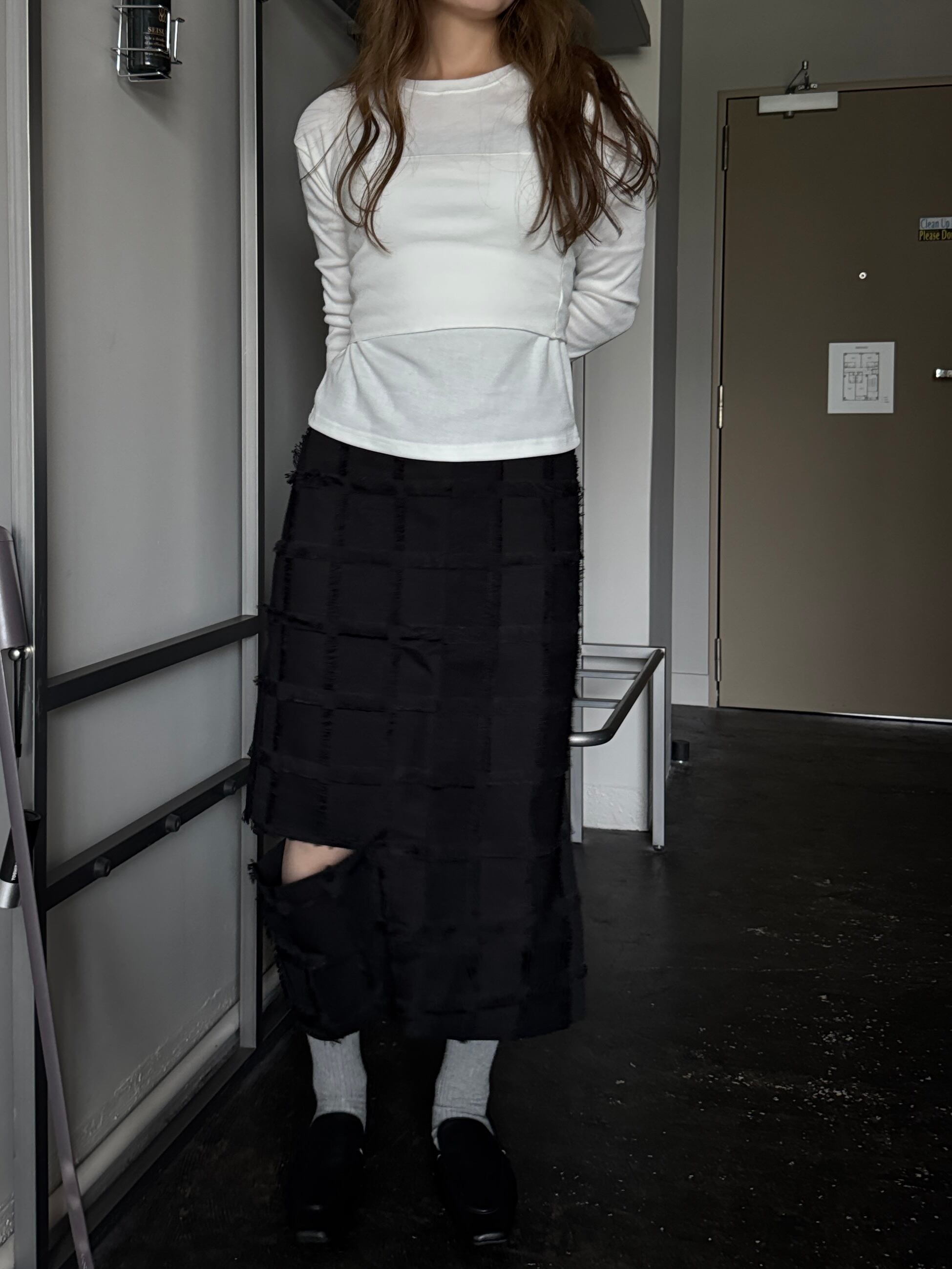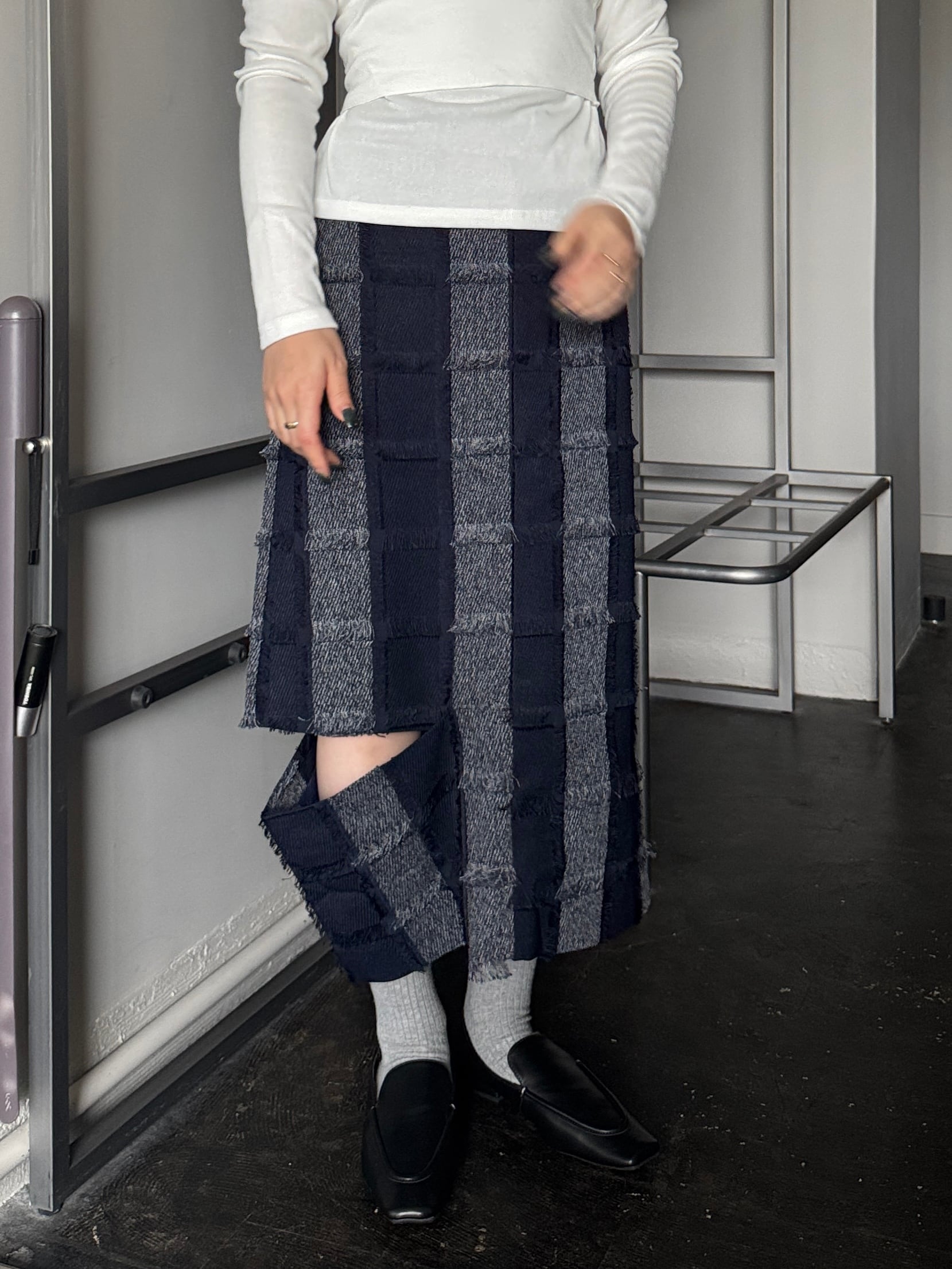 スクエアフリンジとサイドカットデザインが特徴的なスカートです。