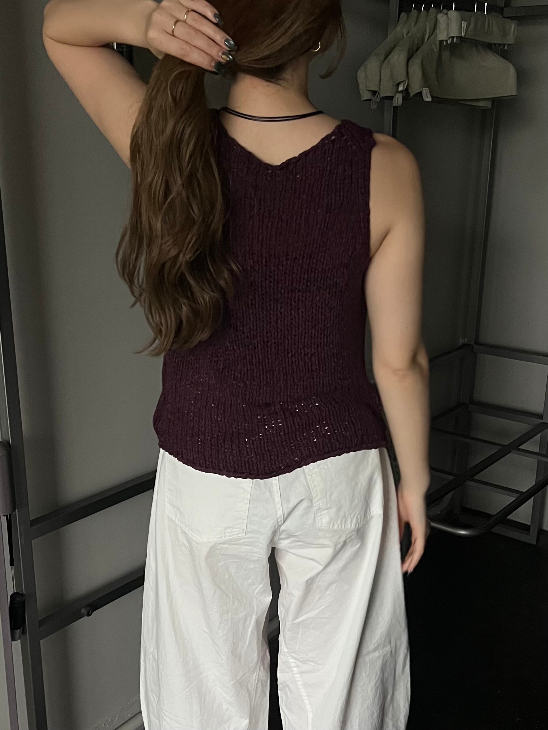 ざっくりと編み上げられたノースリーブサマーニットです。