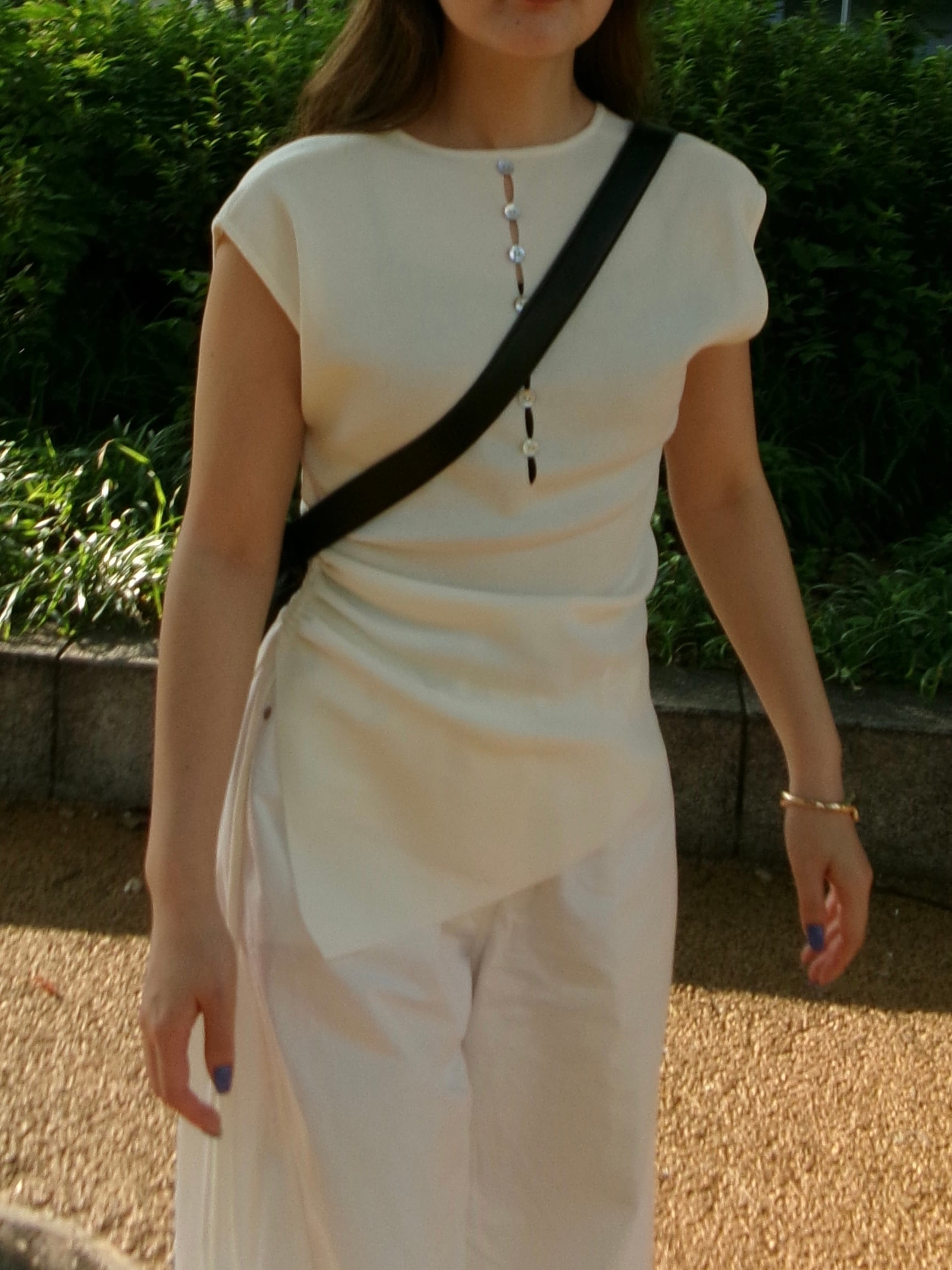 シェルボタンが魅力的なトップス