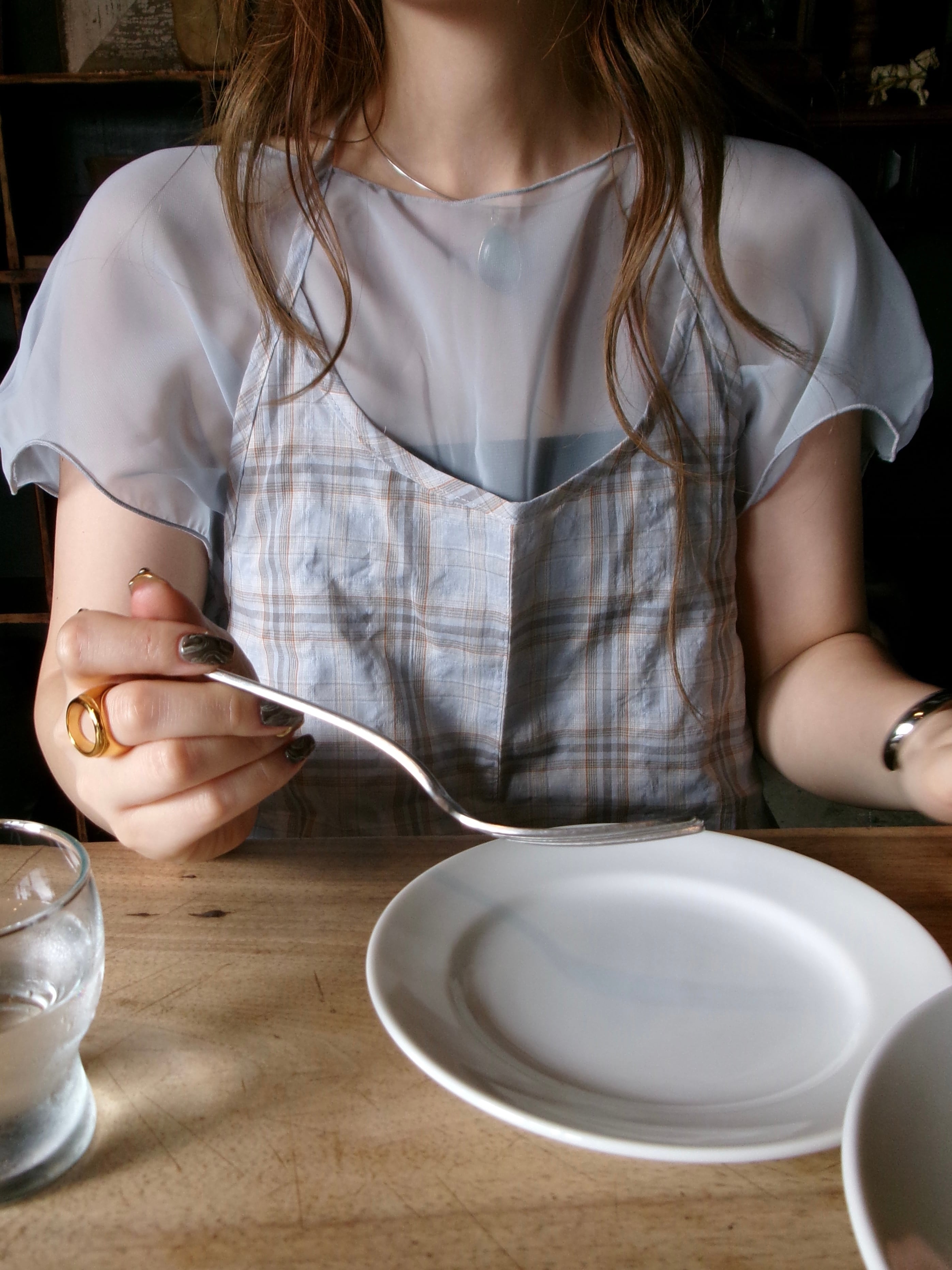 アームホールが広く柔らかいため、シルエットが優しい印象になります。
