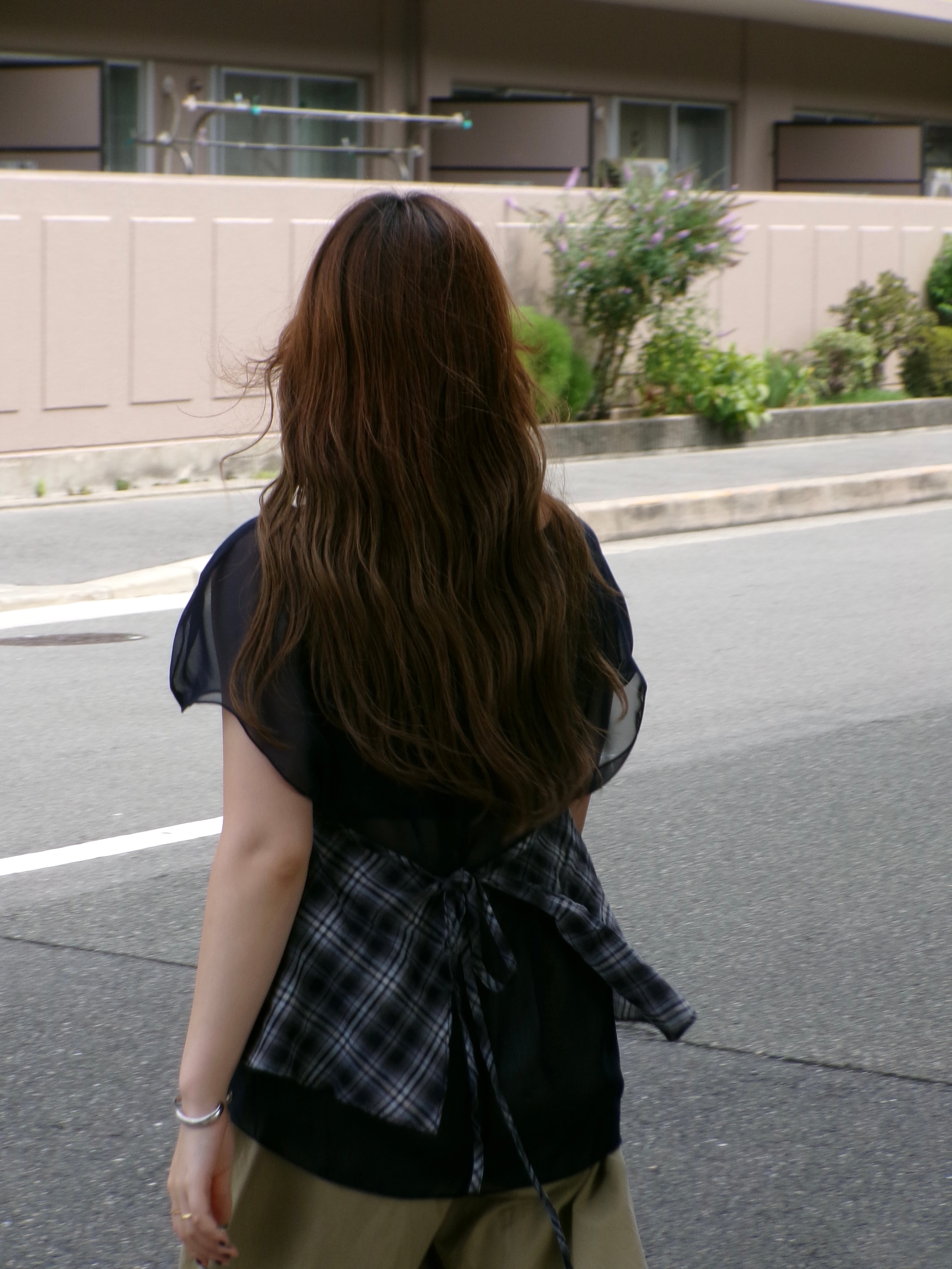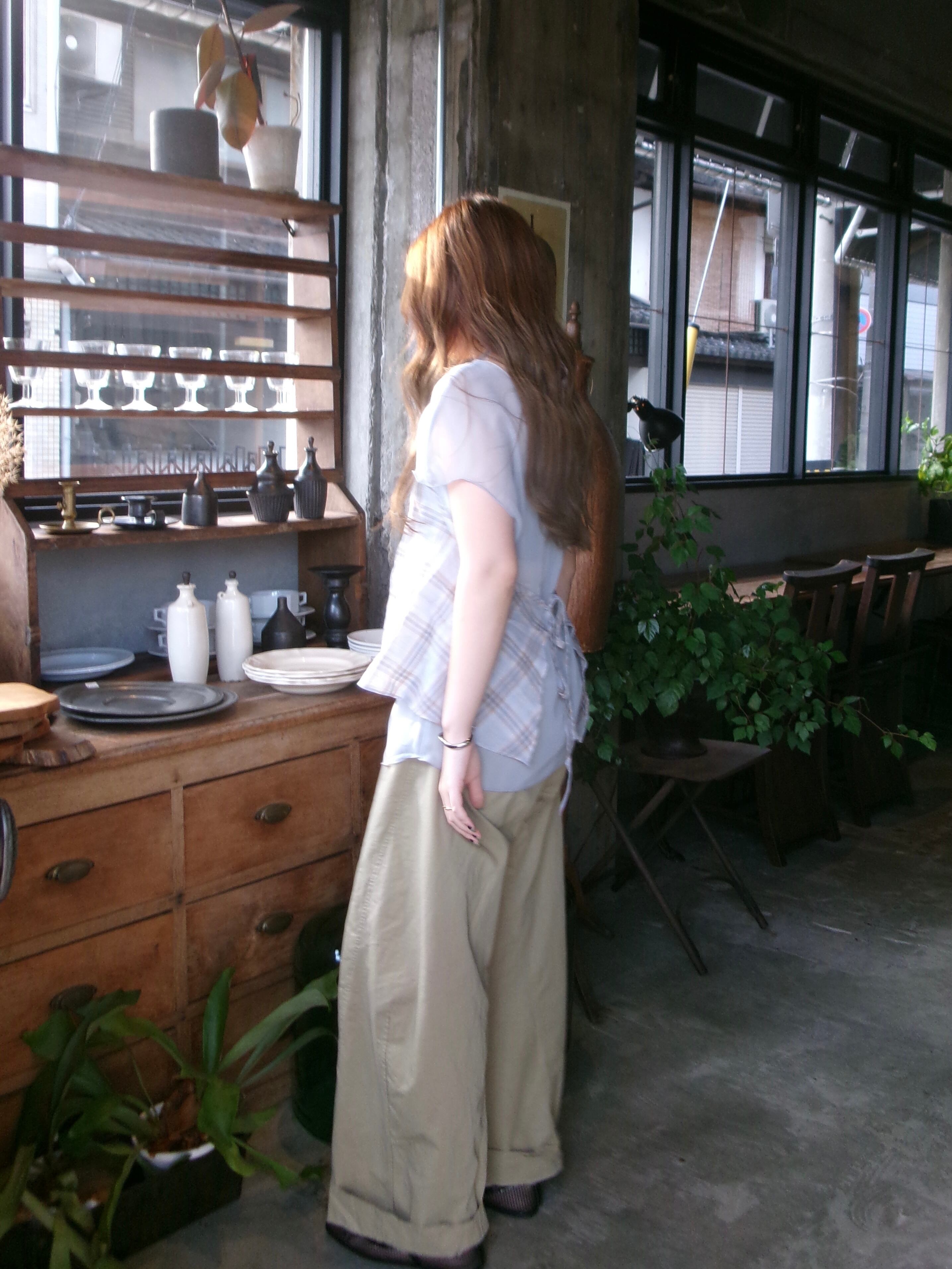 ビスチェは後ろで紐を結ぶ仕様になっており、着こなしに合わせてシルエットの調整をオリジナルでして頂けます。