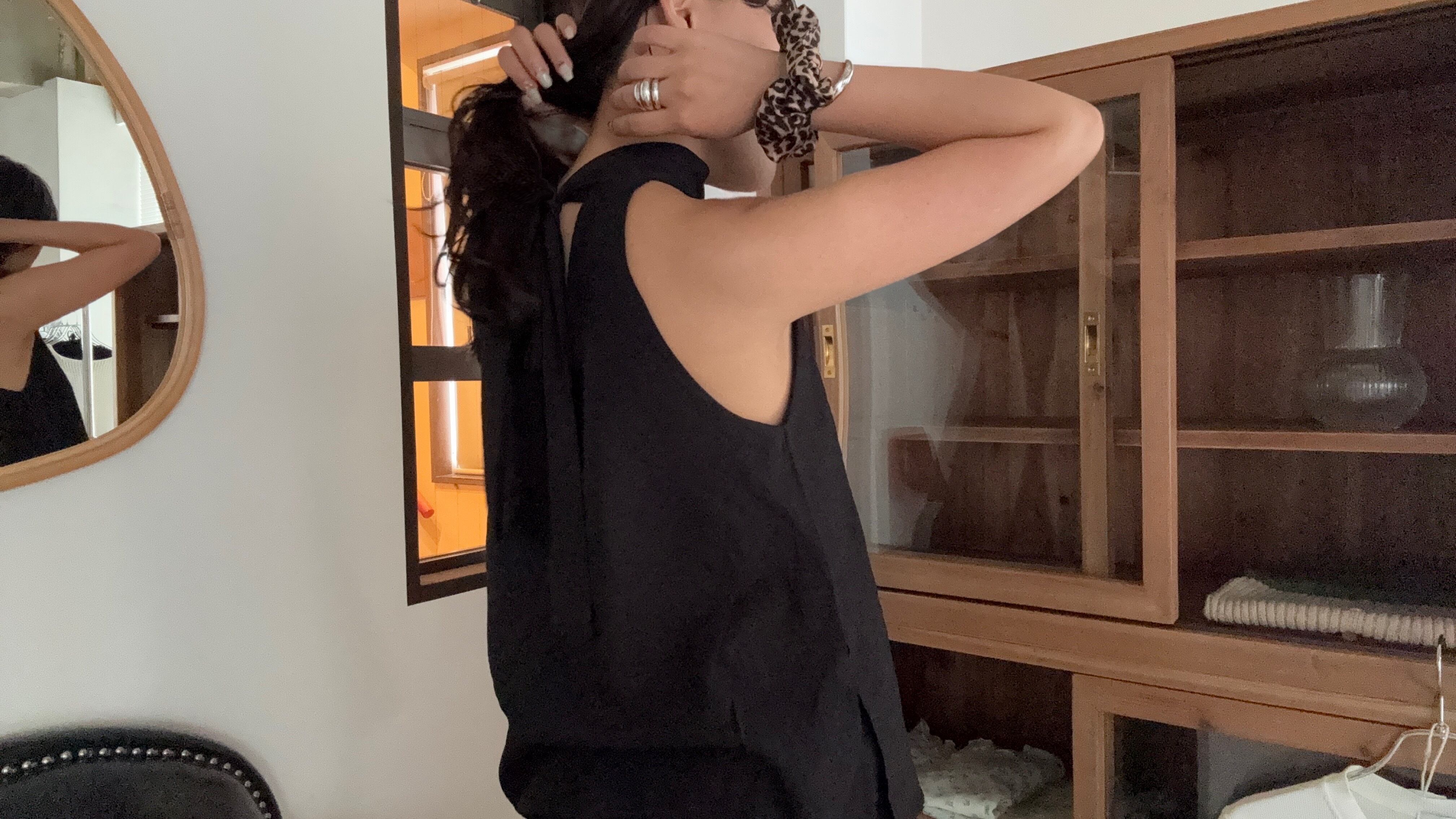 軽やかな質感とシンプルながらも上品さを感じさせるハイネックデザインのノースリーブトップス。
