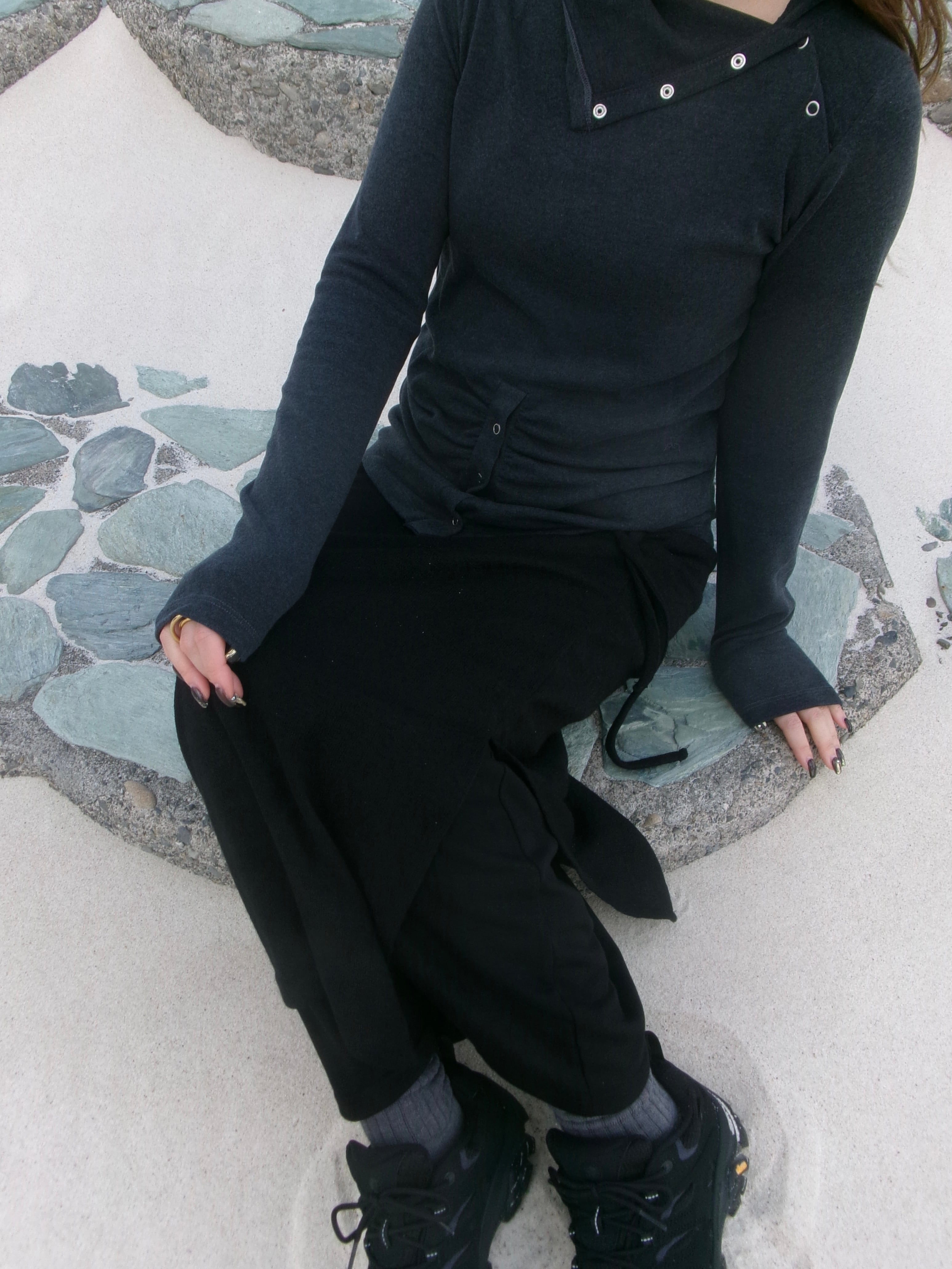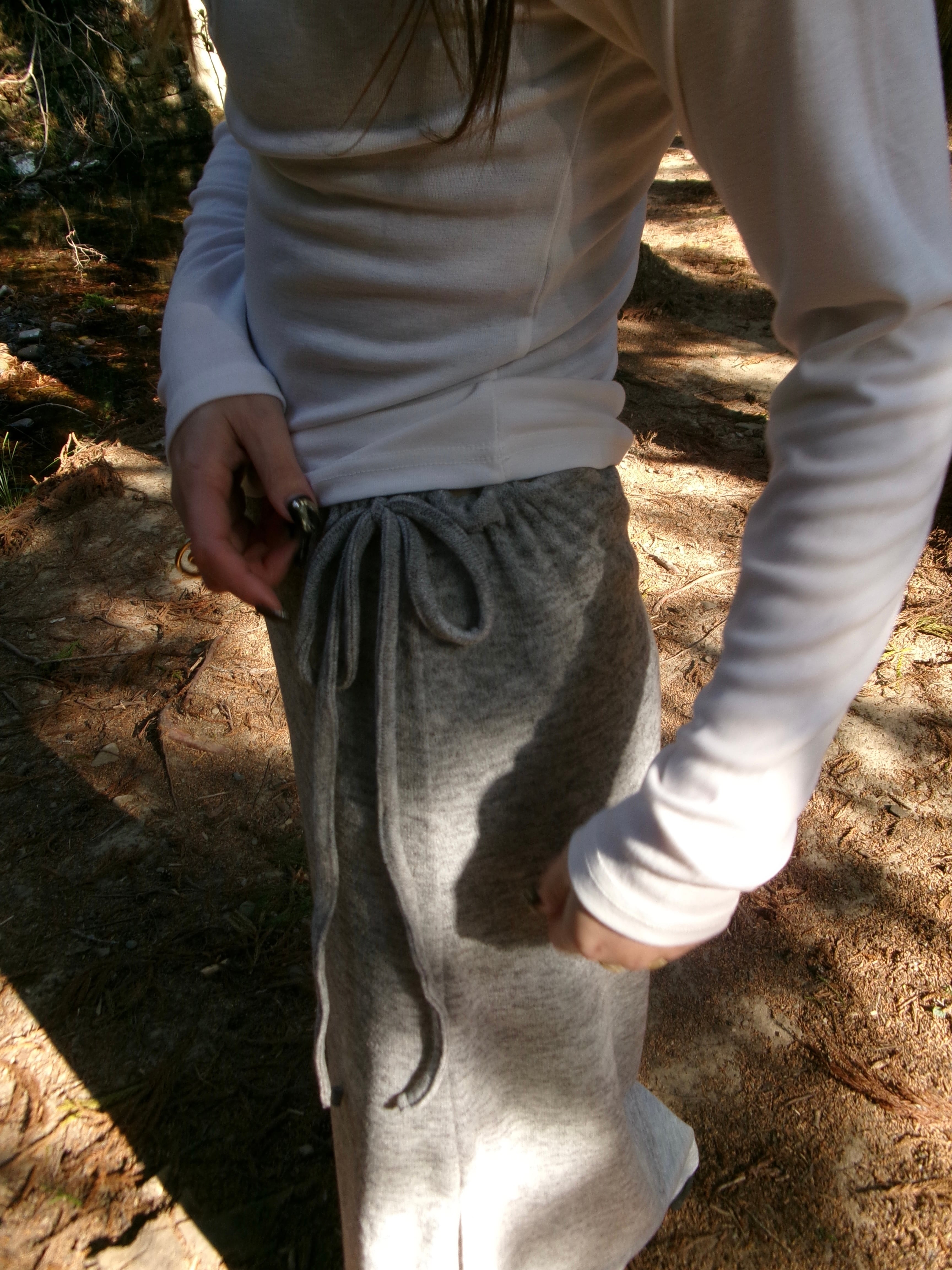 ウエスト部分は紐にて調整可能となっております。