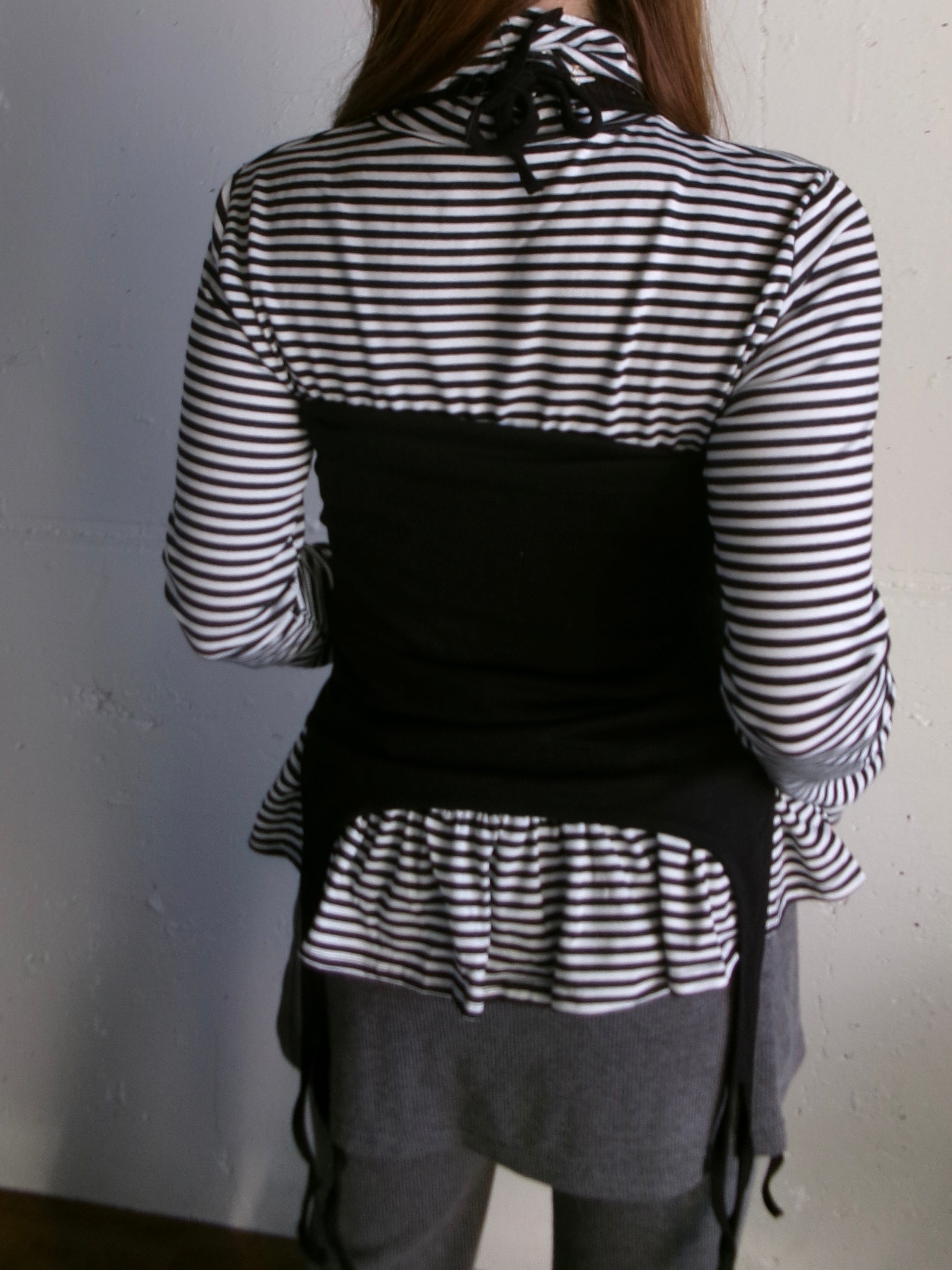 裾を折り返して肩で紐を結ぶと2wayで使って頂けます。