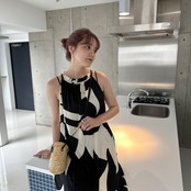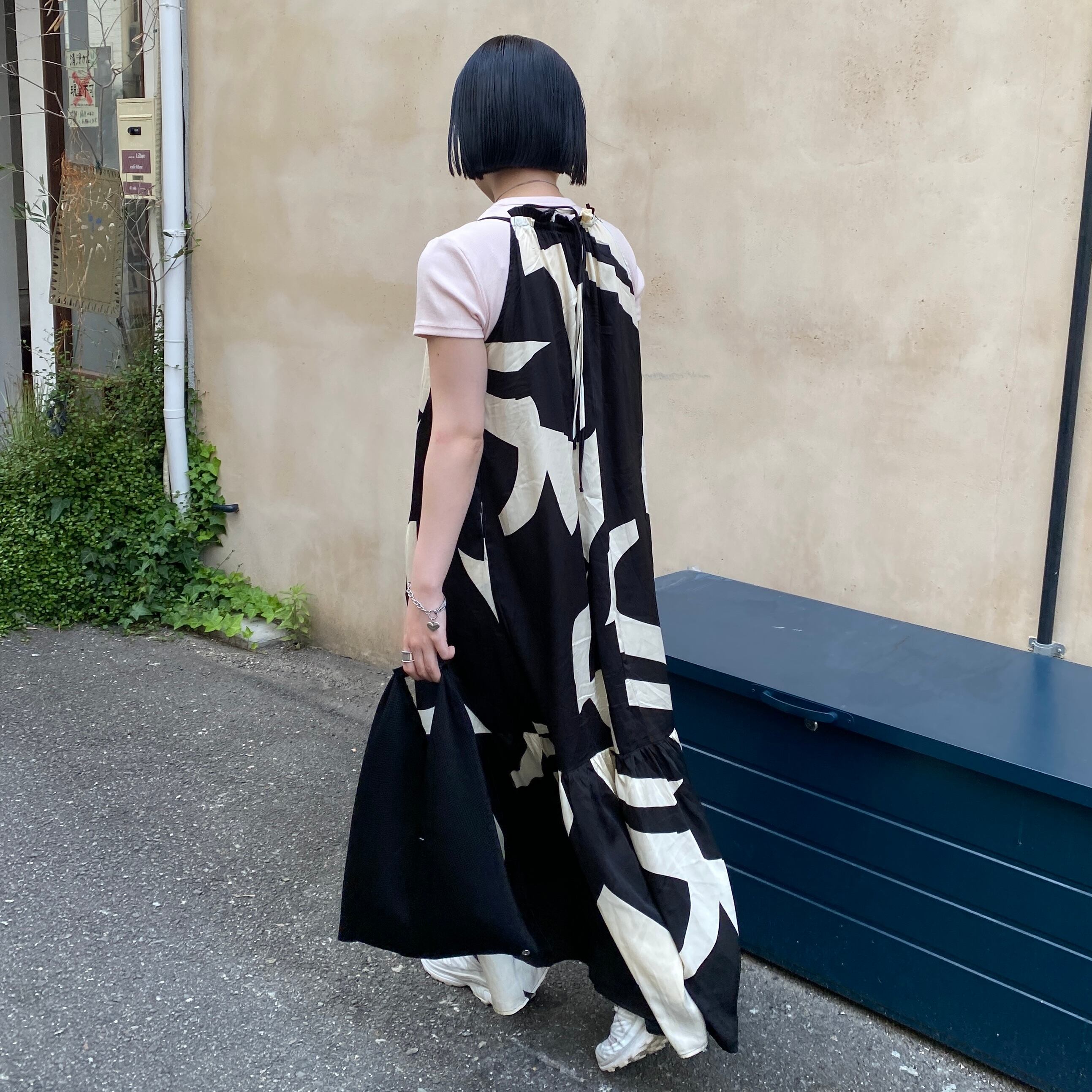 肩紐にて丈感の調節が可能なので、身長問わず着用していただけます。