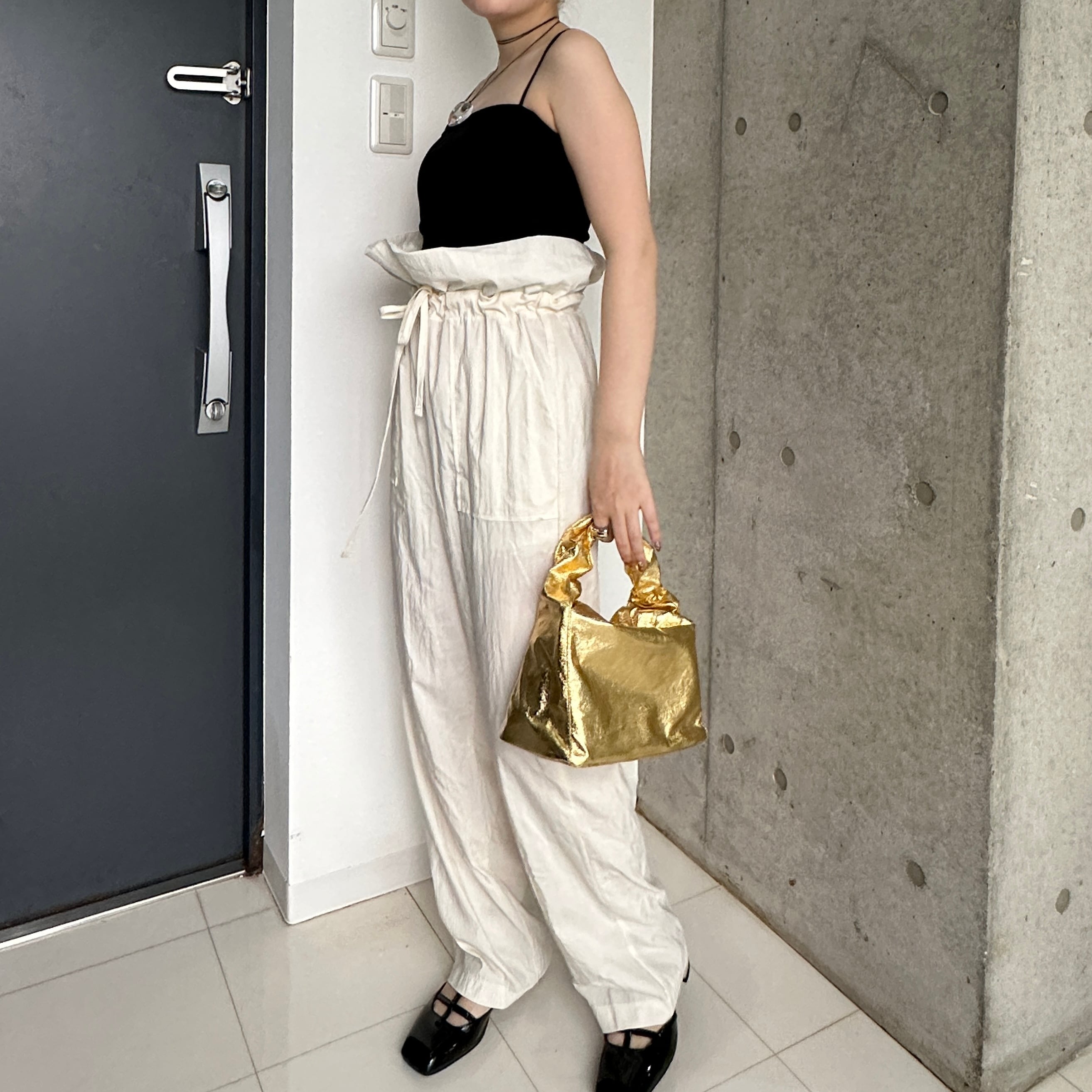 高いウエストラインがポイントのパンツ。