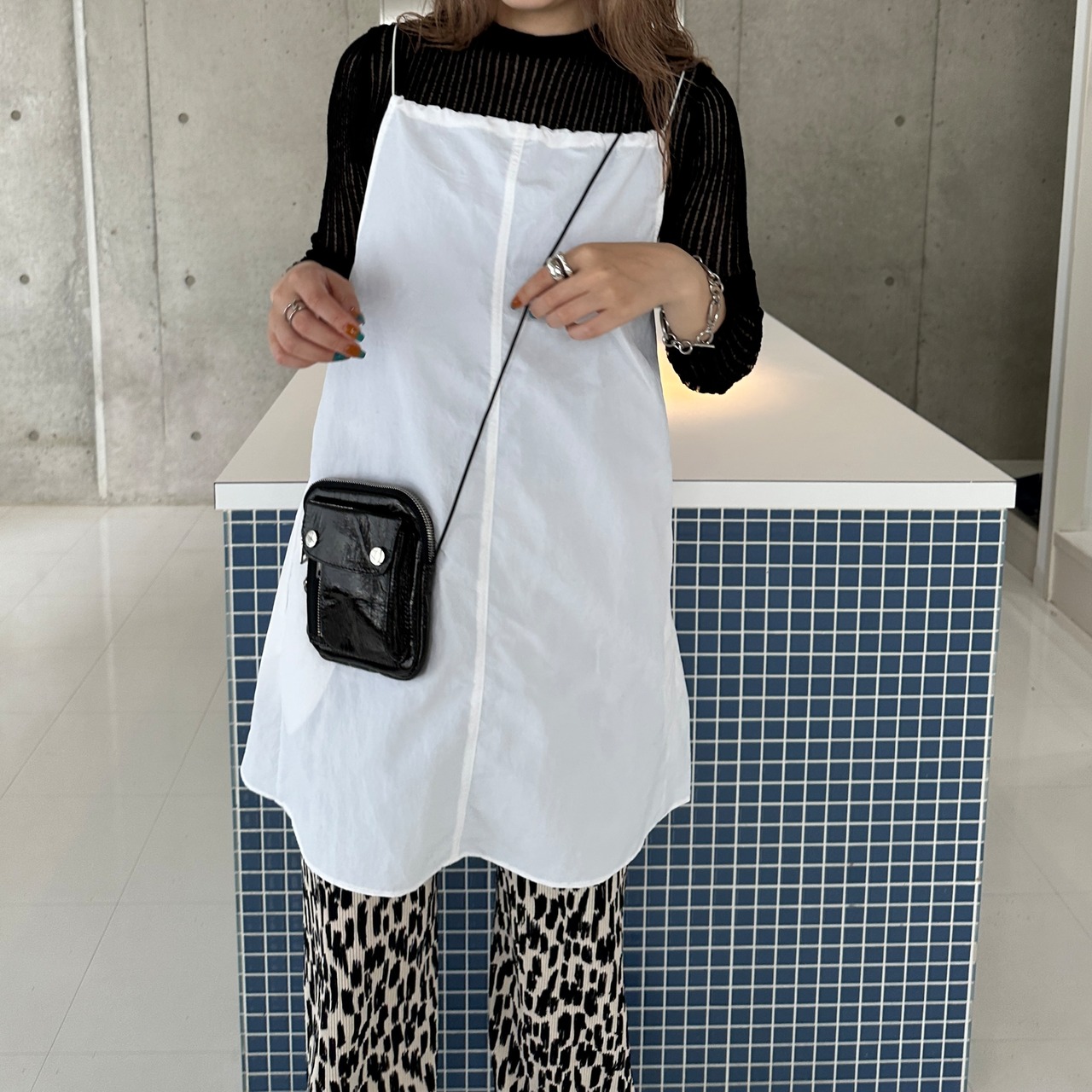 ナイロン素材のキャミワンピース。