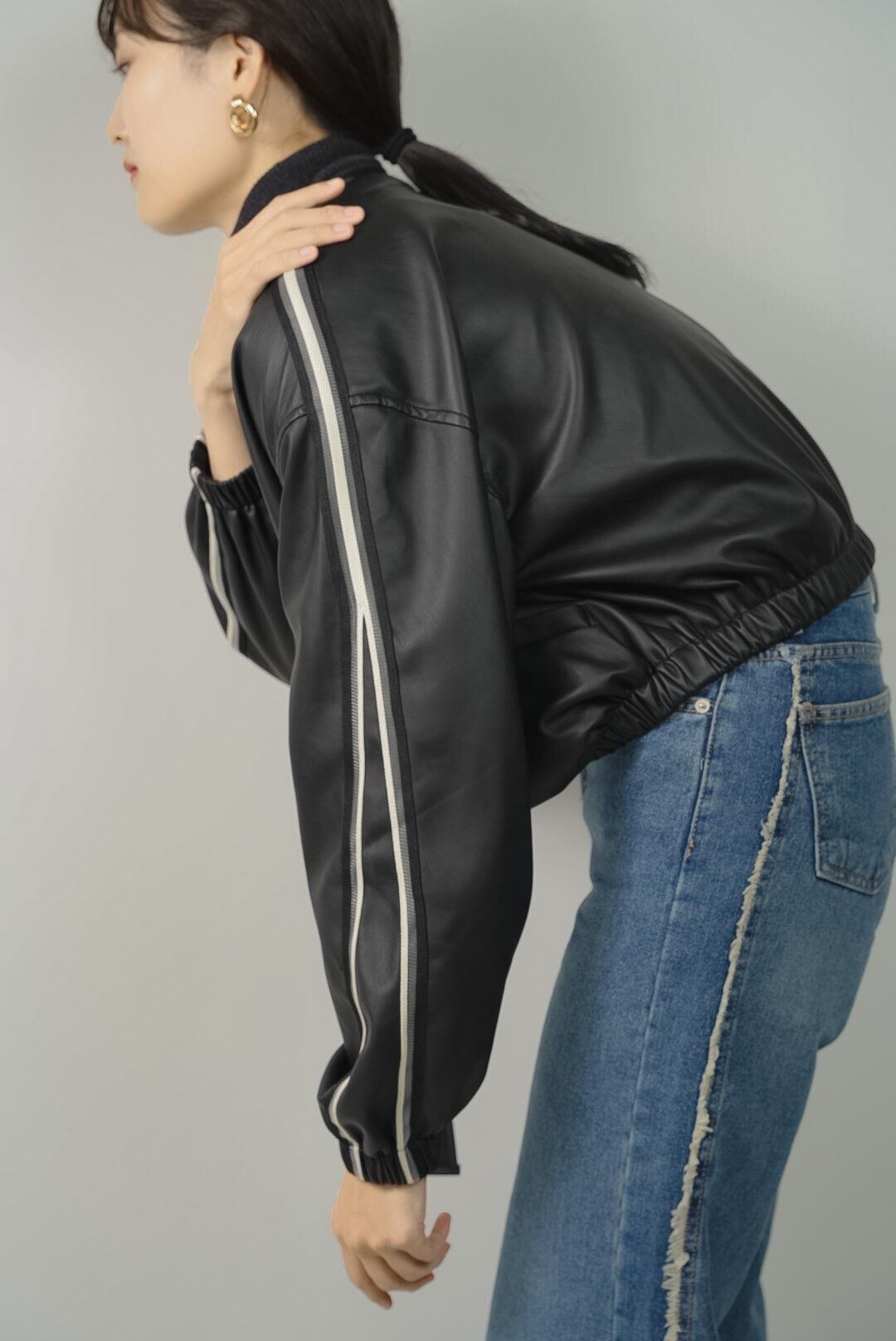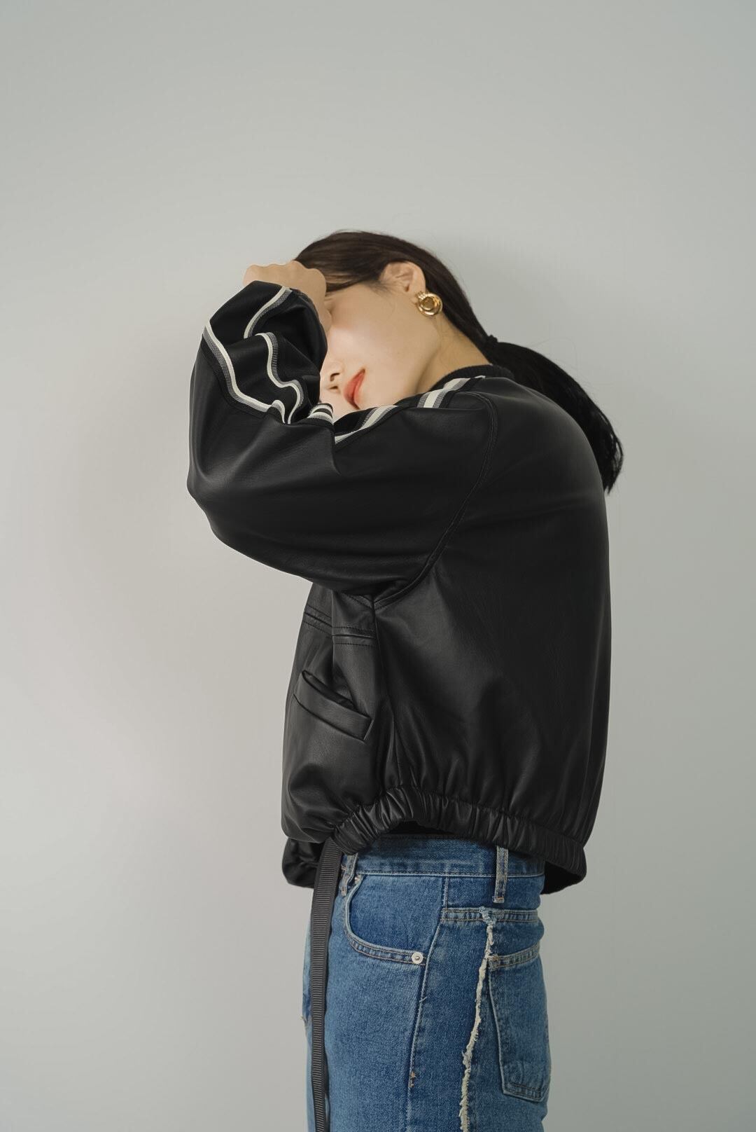 フロント部分のベルトが特徴的なボレロ風レザージャケット。