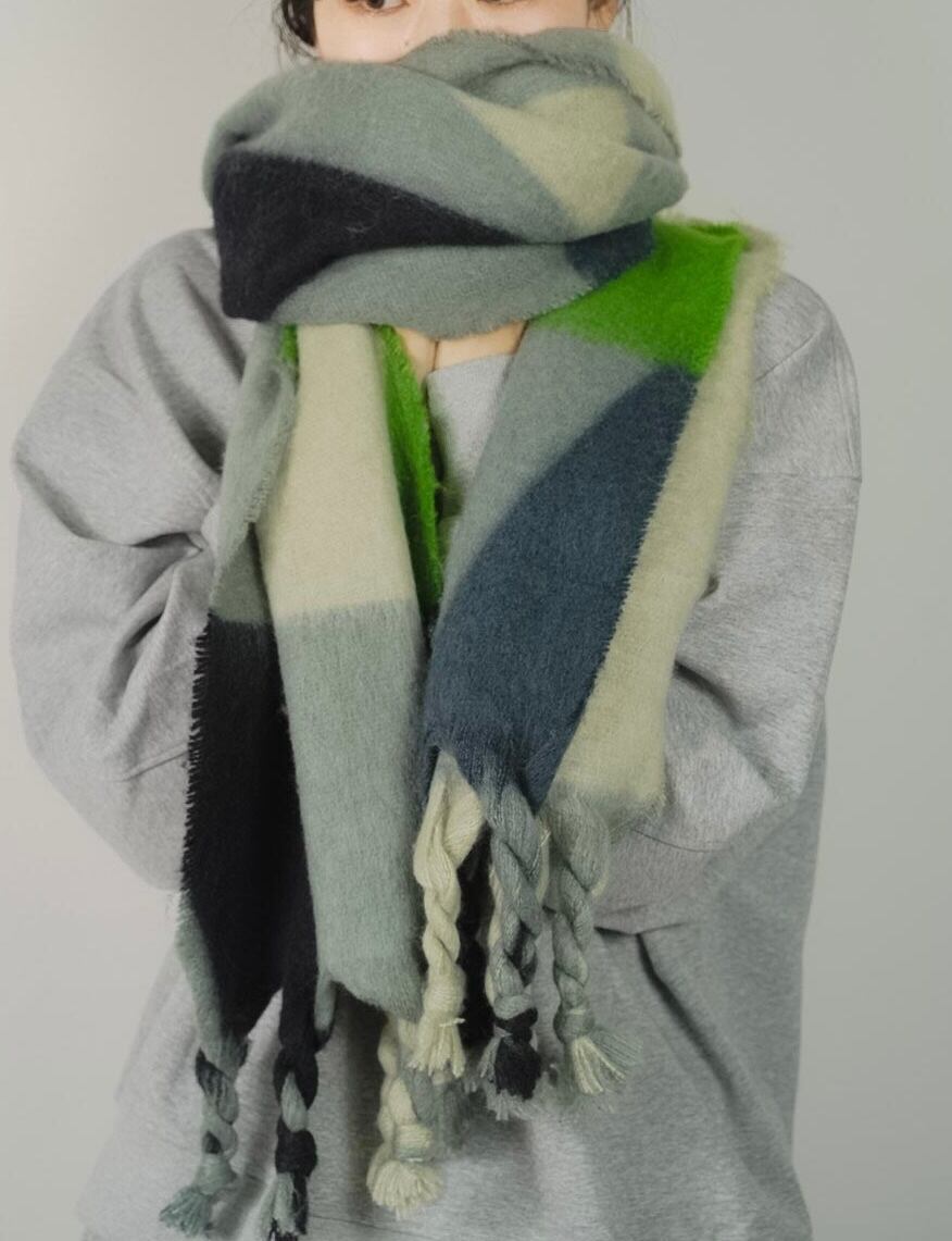 柔らかな肌触りとボリューム感の太フリンジマフラー。