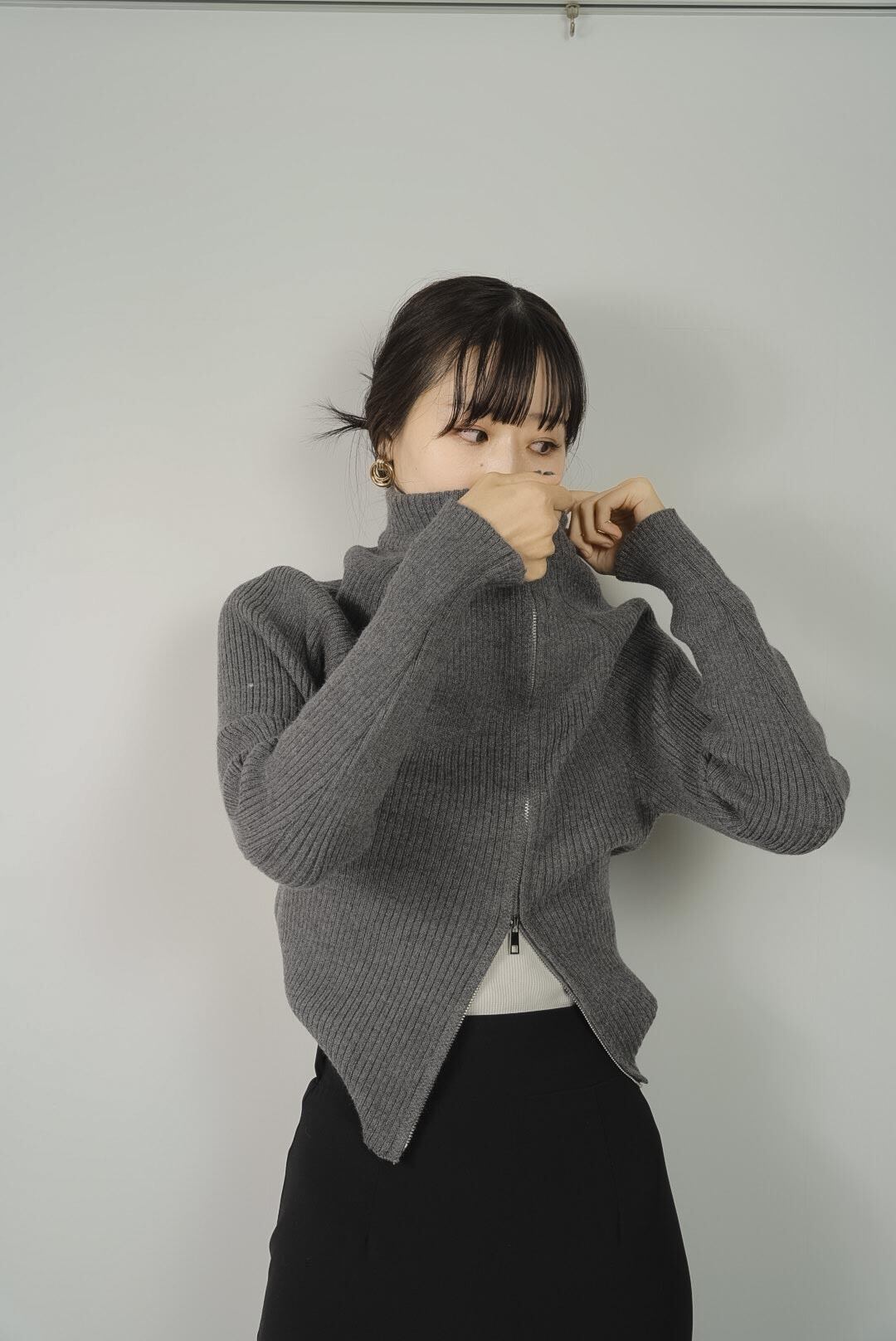 上下にファスナーを施したトレンド感のあるリブニットトップス。