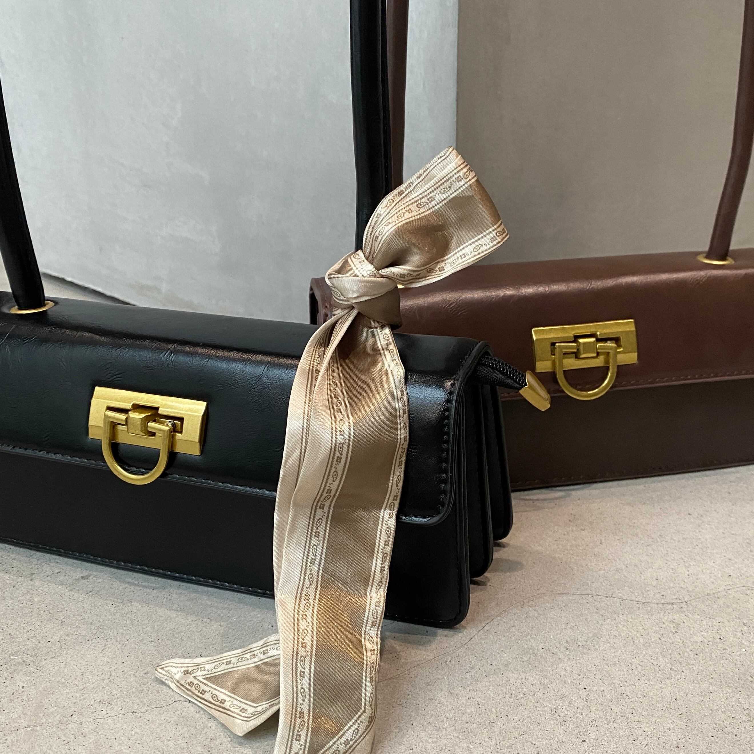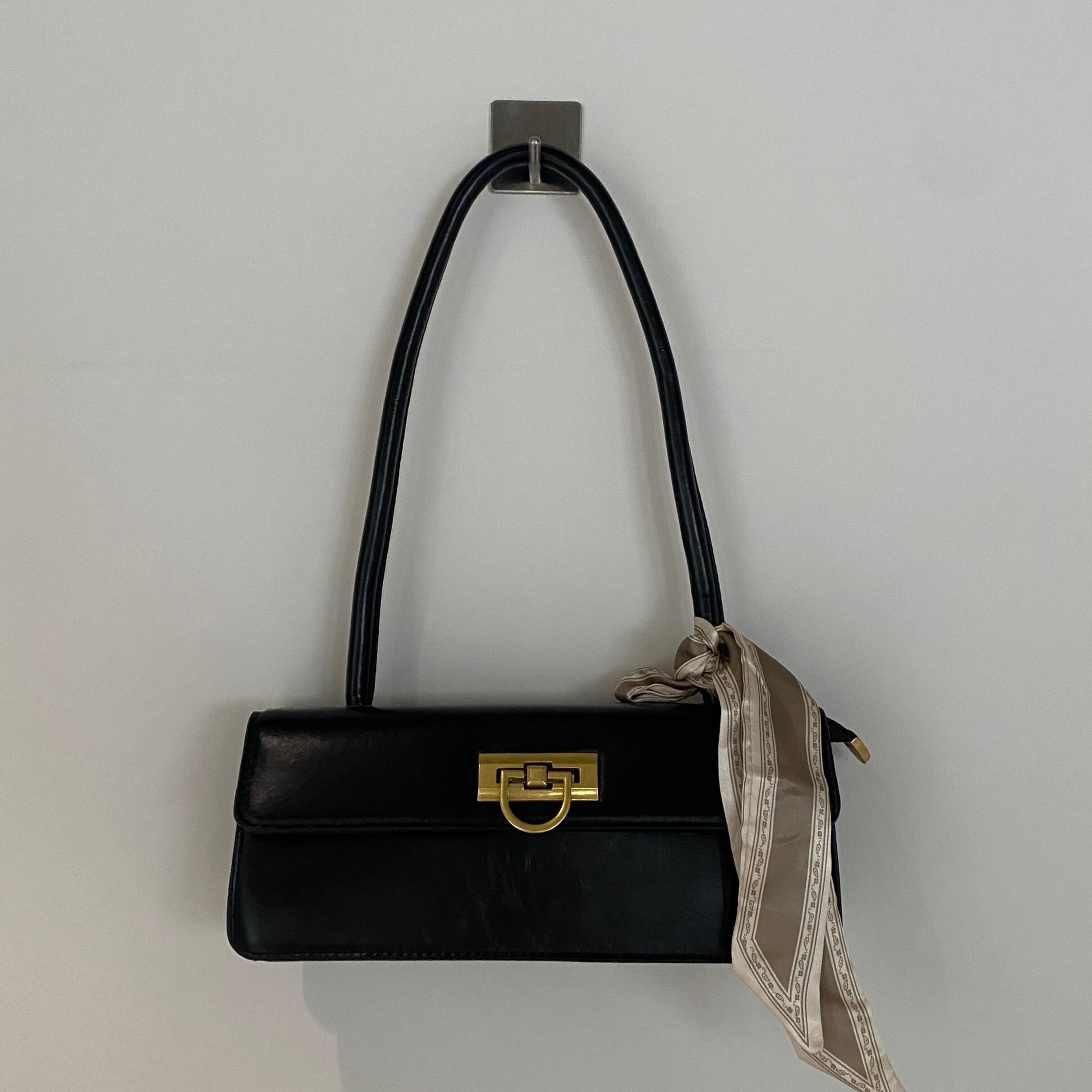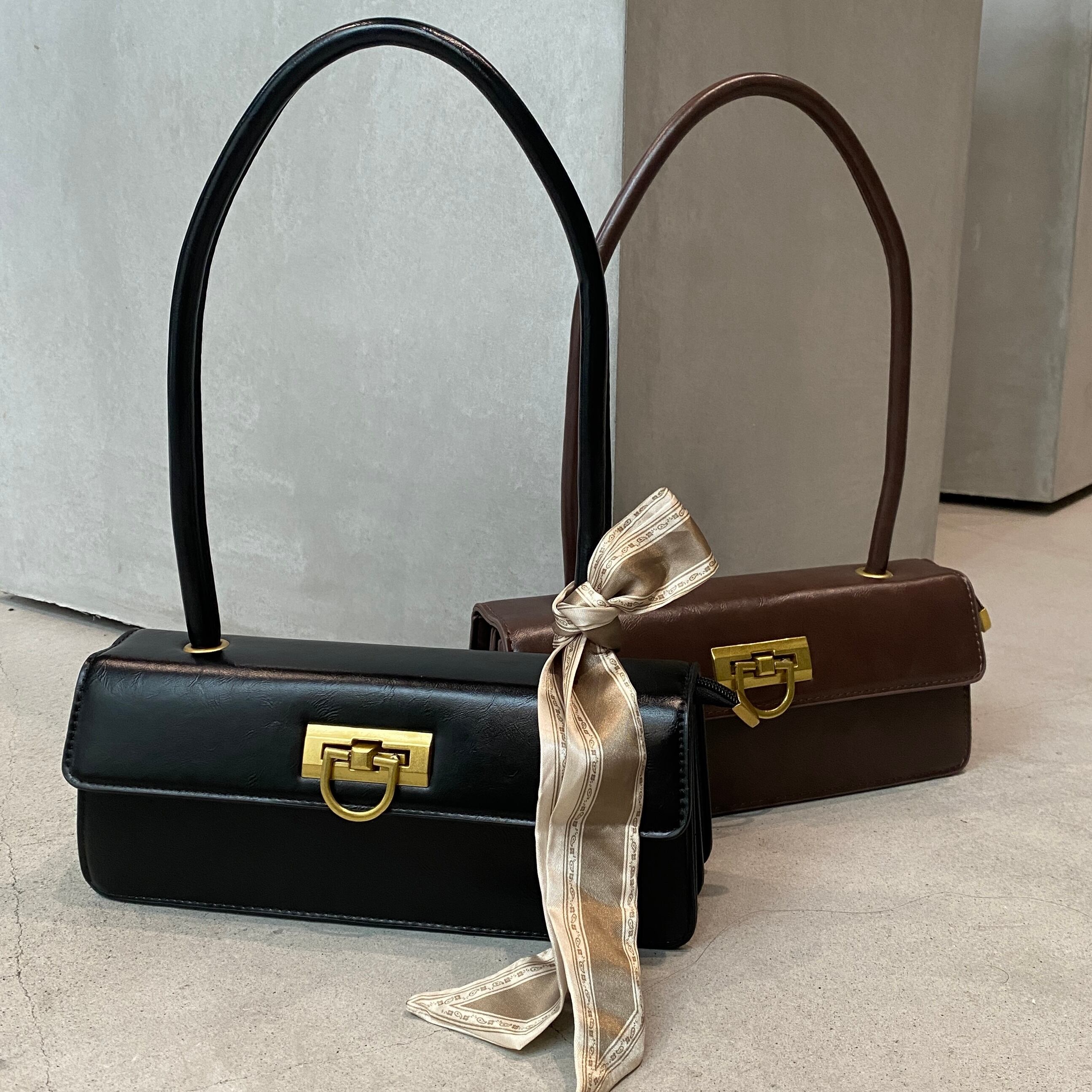 横長のスクエアデザインがトレンドライクなハンドバッグ。