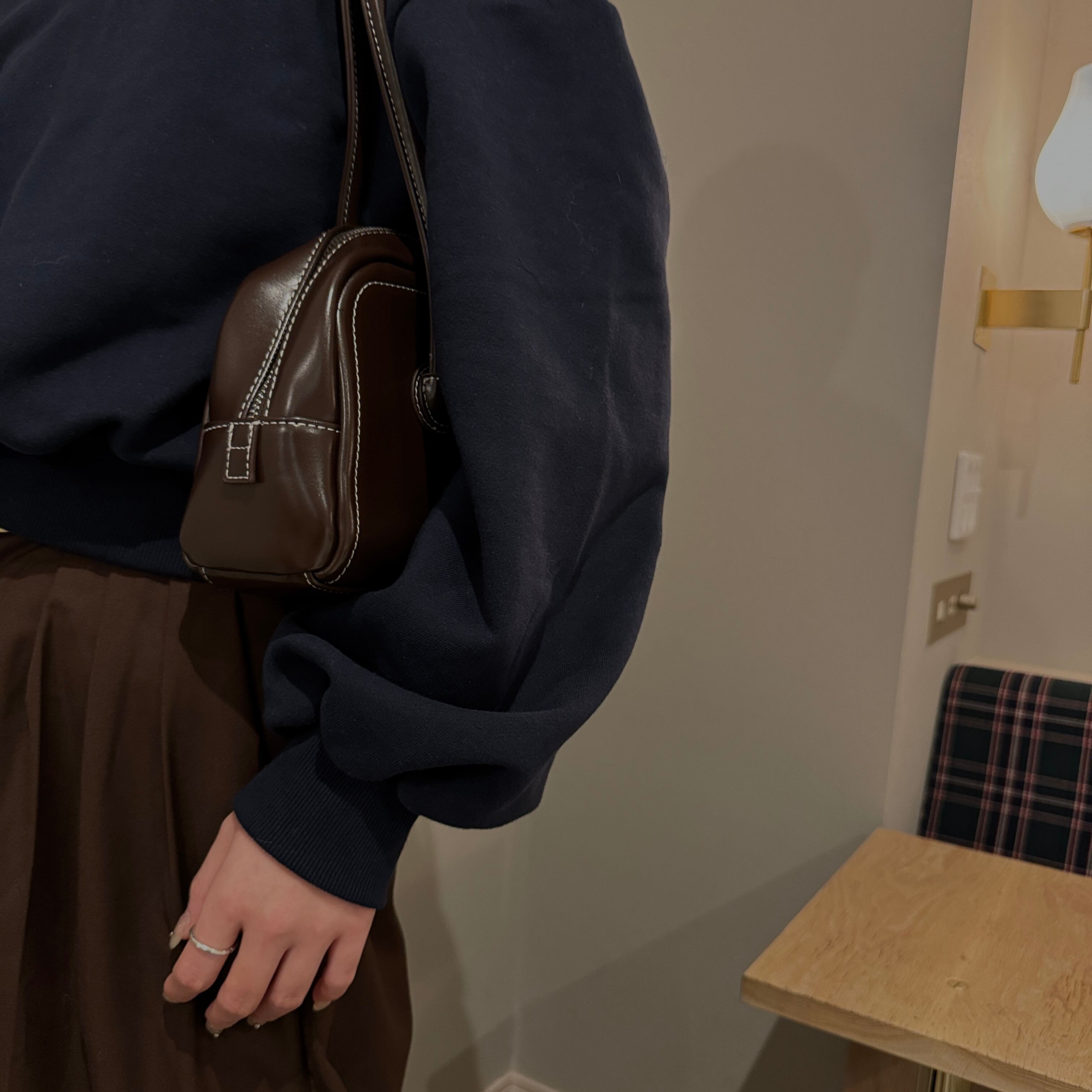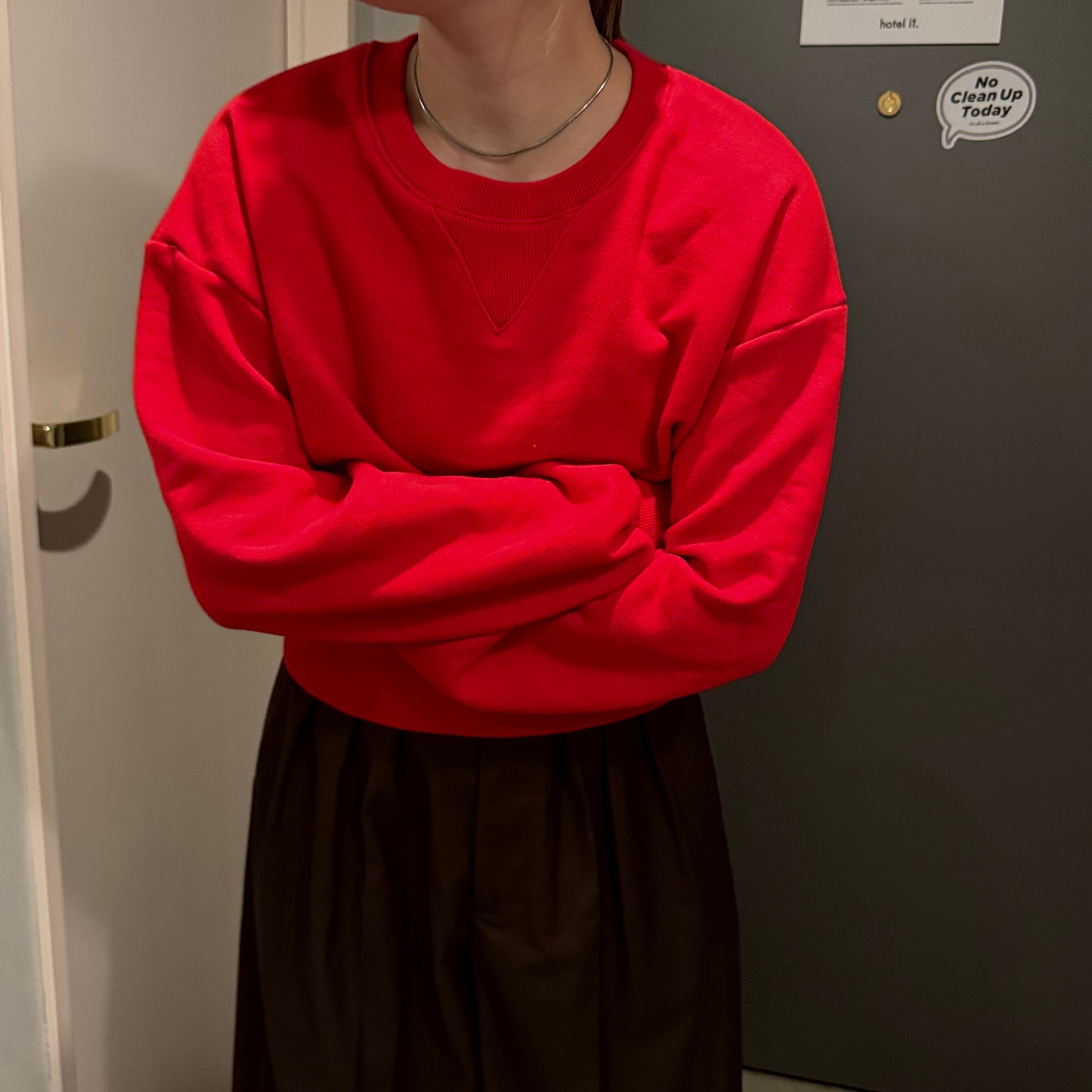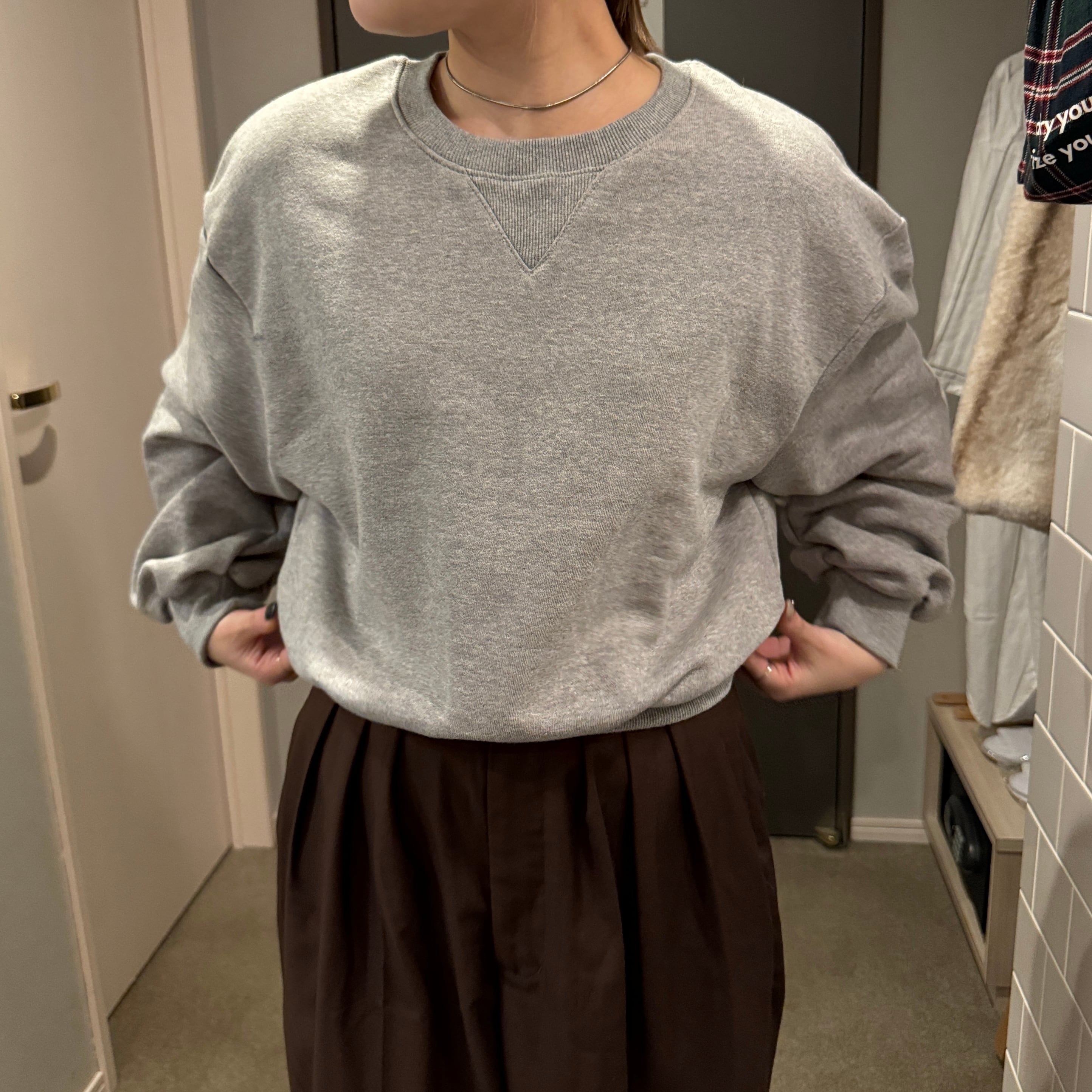 シンプルなスウェットをショート丈にしたことで、女性らしく着こなせるスウェットに。