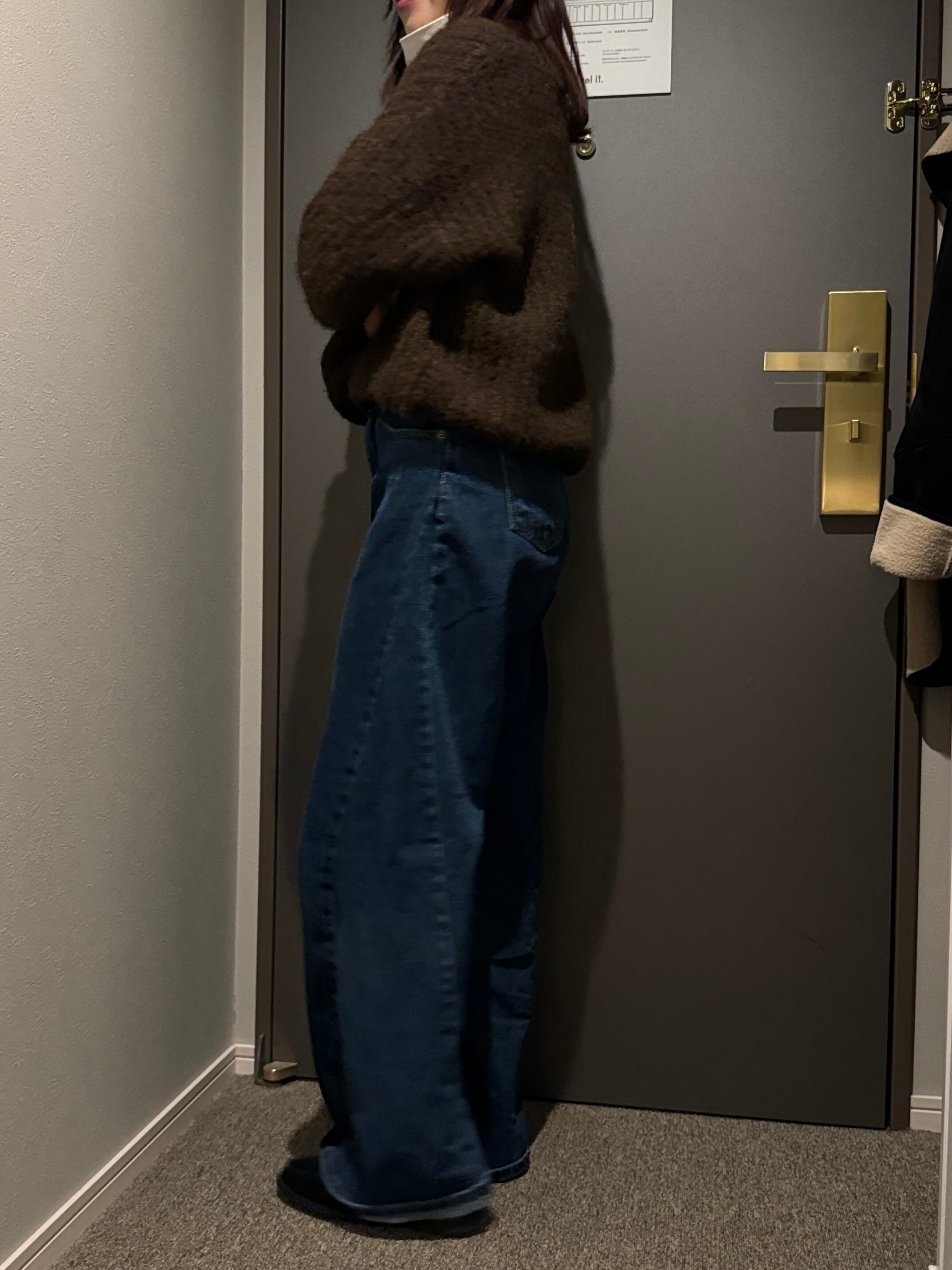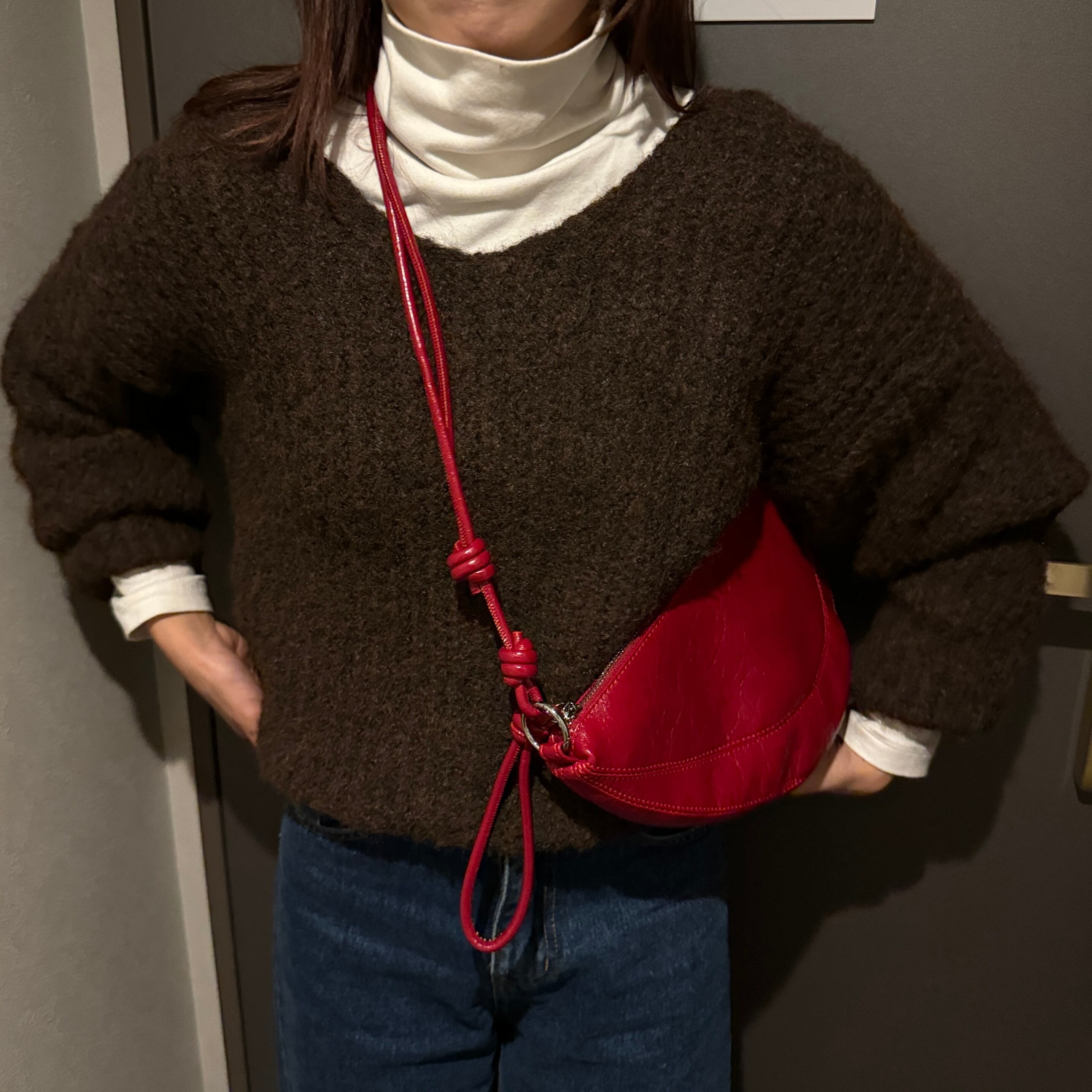 こっくりブラウンのカラーでトレンドを抑えつつ、シンプルで着回し力の高いアイテムです。