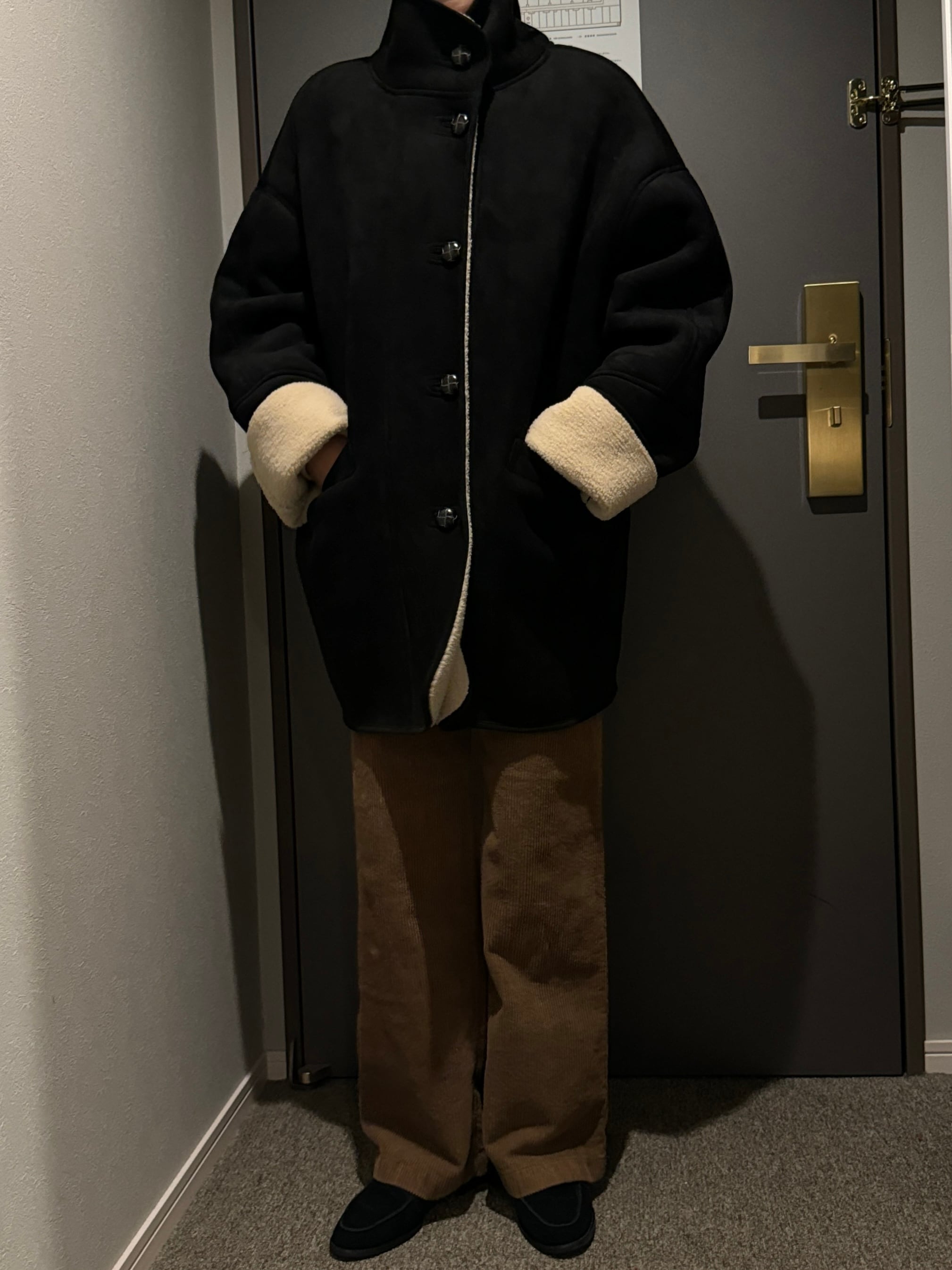 マットなスエード生地に立体感のあるボアを組み合わせたシーズンムード高まる一着。